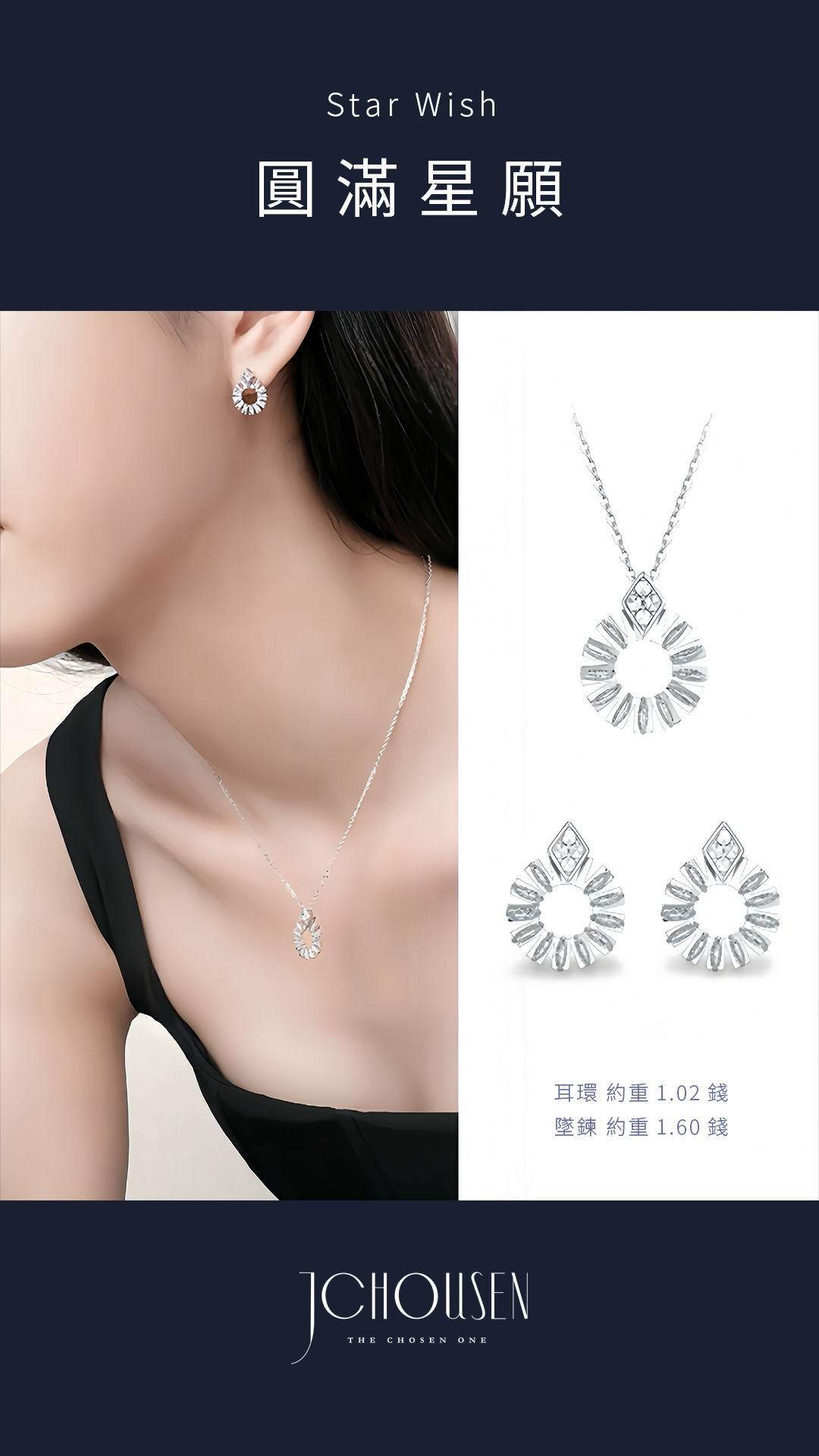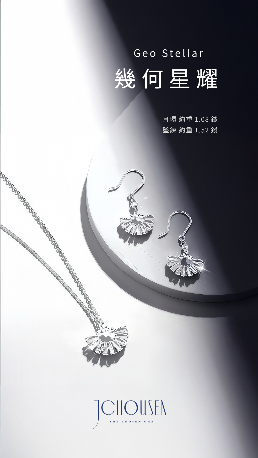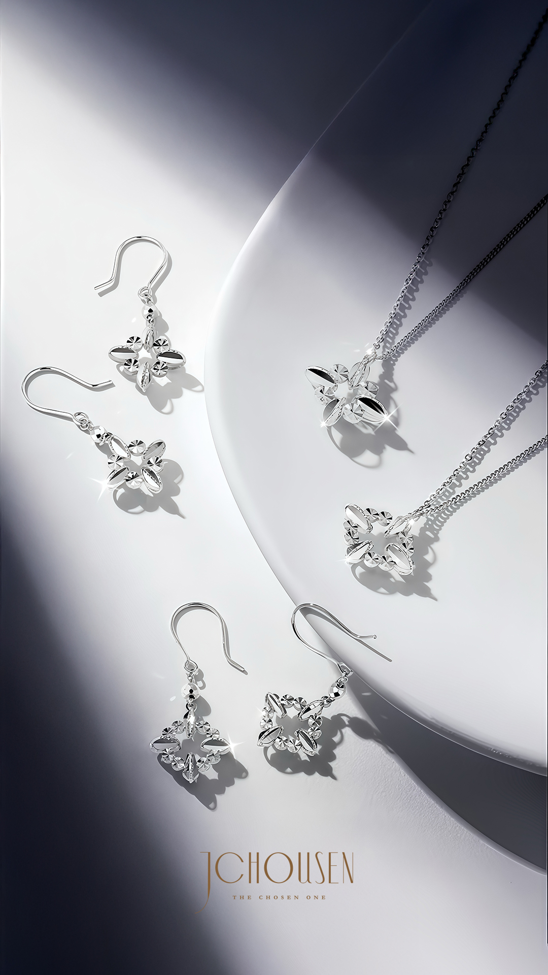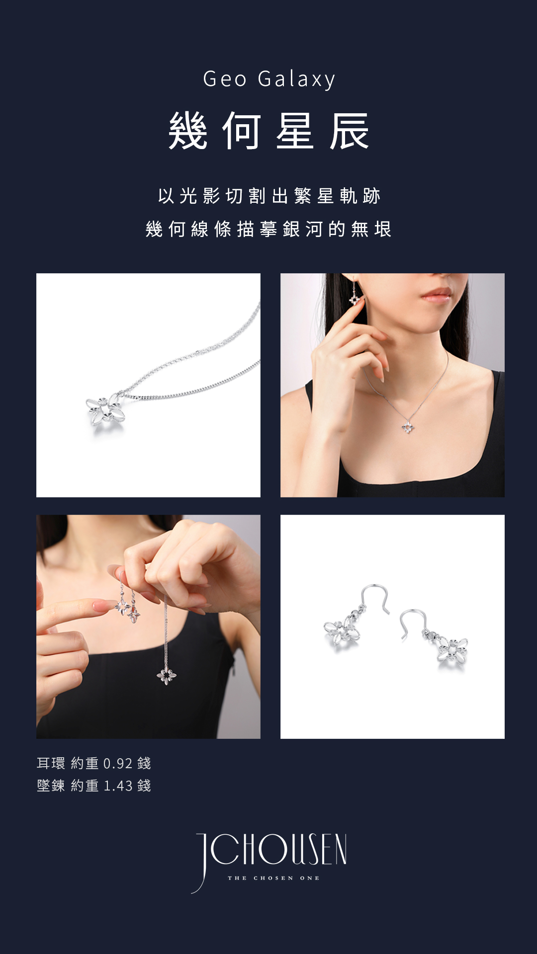 以鉑金的純淨質感,勾勒星辰輪廓,呈現冰晶般的光影切割,將宇宙的浪漫化作日常的佩戴。