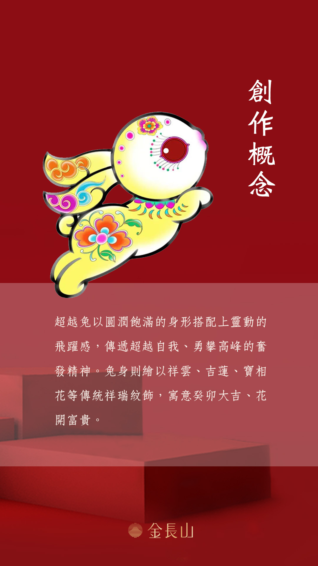 超越兔系列配合癸卯兔年,描繪兔子圓潤飽滿的身形搭配上靈動的飛躍感,傳遞超越自我、勇攀高峰的奮發精神。兔身則繪以祥雲、吉蓮、寶相花等傳統祥瑞紋飾,演繹東方美學,寓意癸卯大吉、花開富貴。