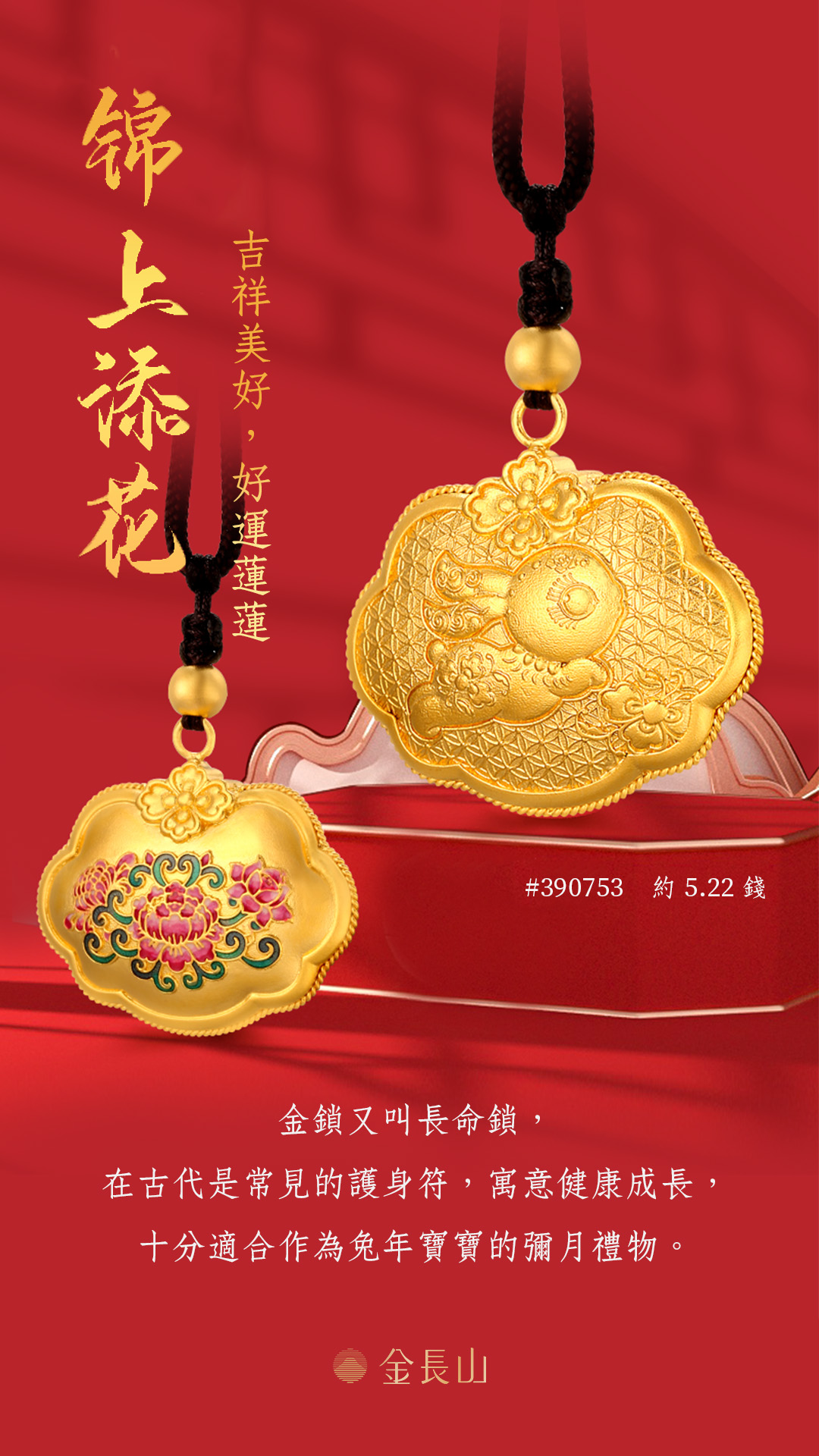 金鎖包又叫長命鎖,在古代是民間的一種護身符,後寓意健康成長,十分合適作為兔年寶寶的彌月禮物。古法金福佑鎖包,鎖住吉祥福氣,祈願佩戴者萬事順心。以可愛又深具意義的兔子鎖包,打造最具有文化溫度的祥瑞祝願。