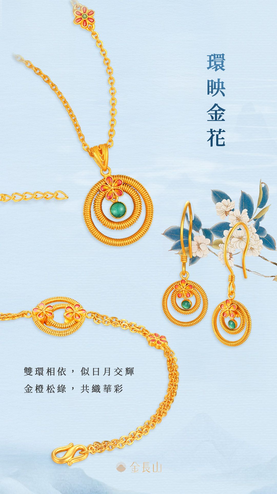 手工花絲、彈絲交繞層疊,掐填為太陽花、四葉草、如意紋輪廓,融合鎏彩等多重工藝,金與火的藝術、手與心的融合,讓每一朵花都極致生動。