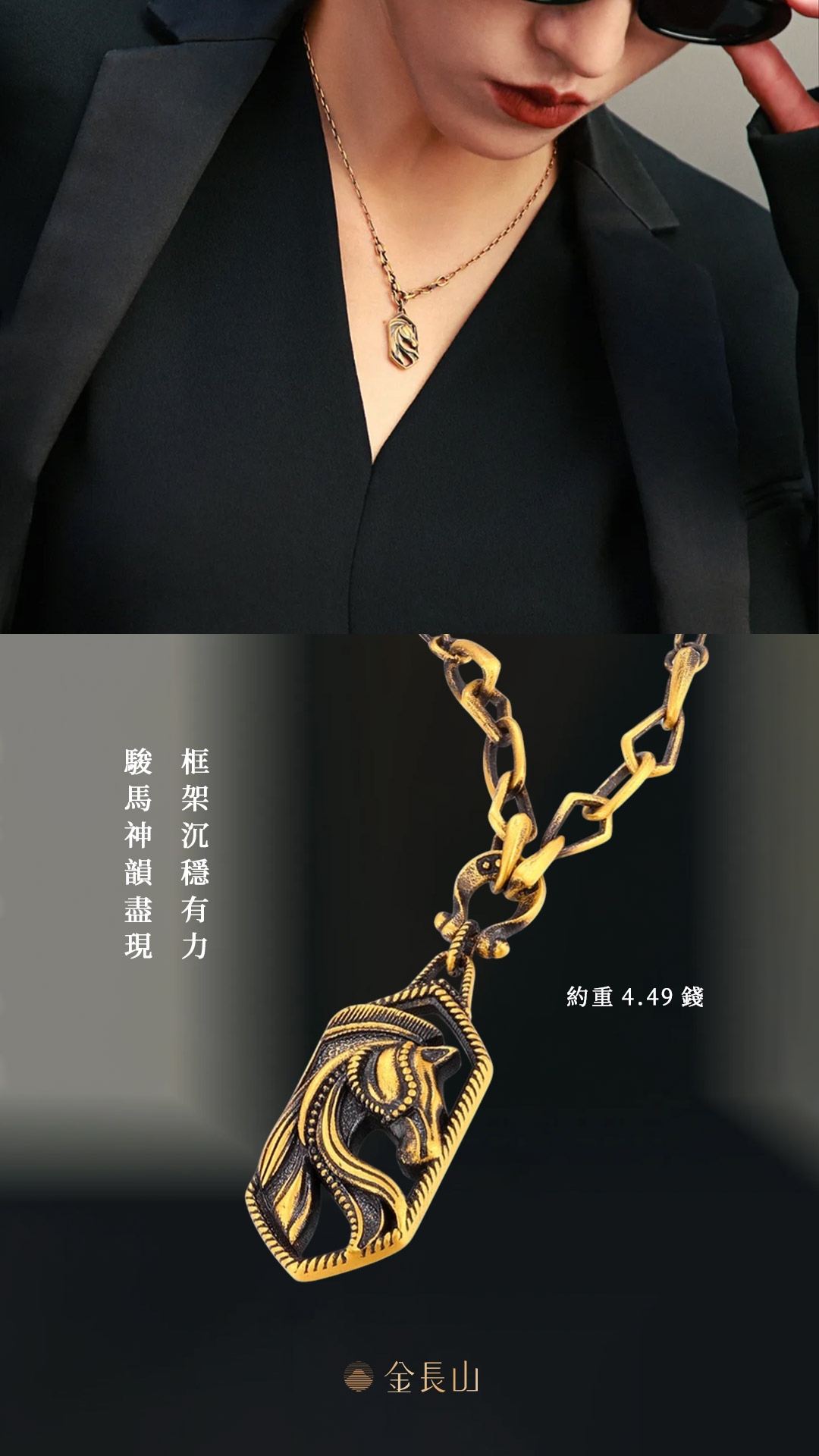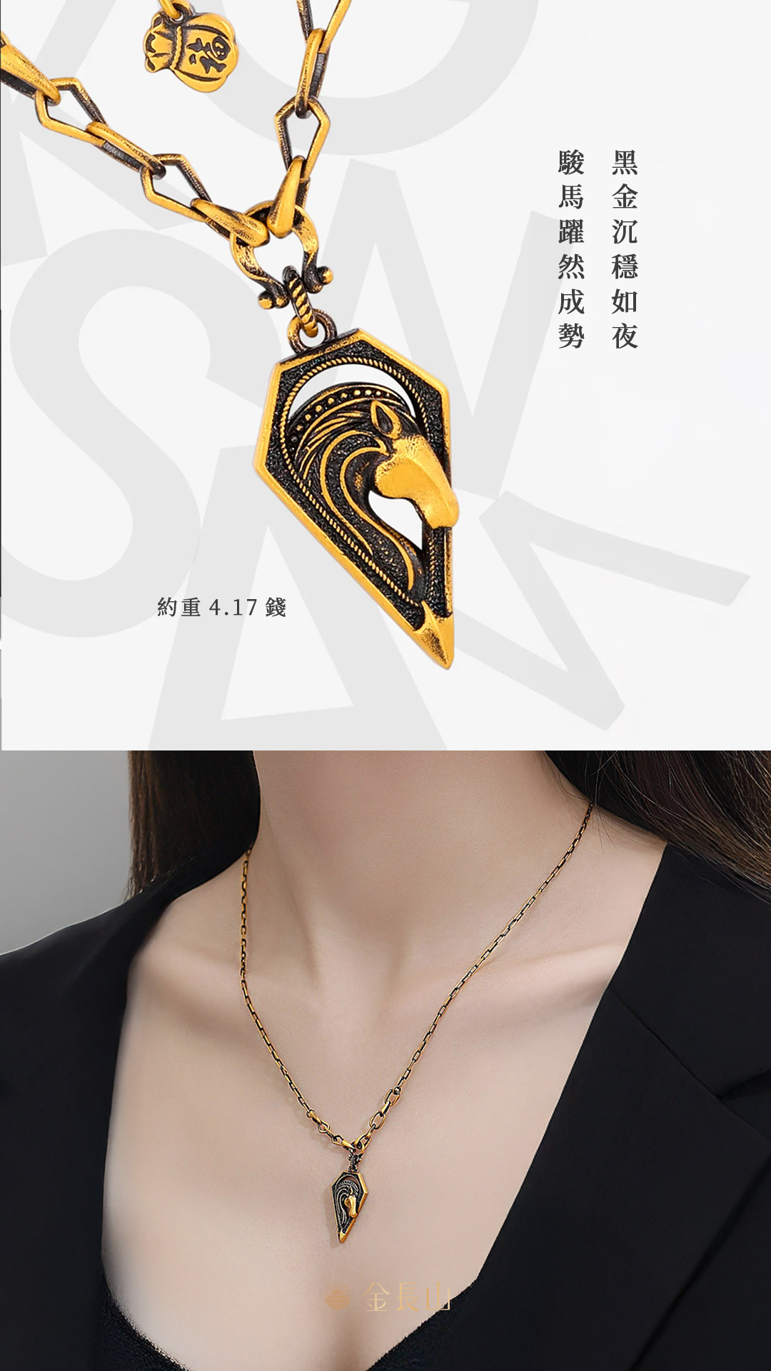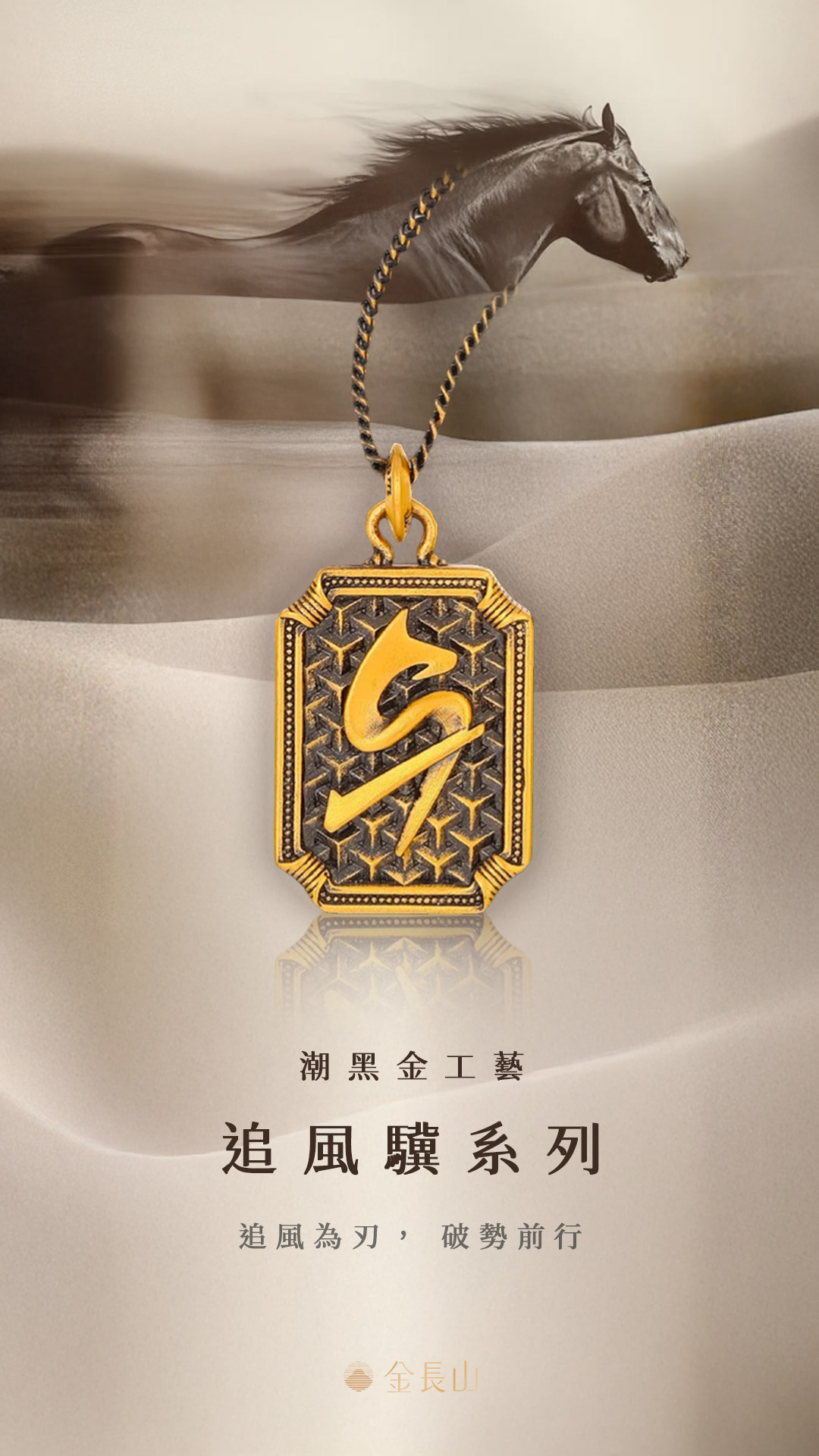 以潮黑金工藝呈現層次深邃的質感,駿馬象徵自由與突破,戰甲象徵守護與勇氣,在光影之間勾勒力量輪廓,衝破束縛、奔向更遠的方向。
