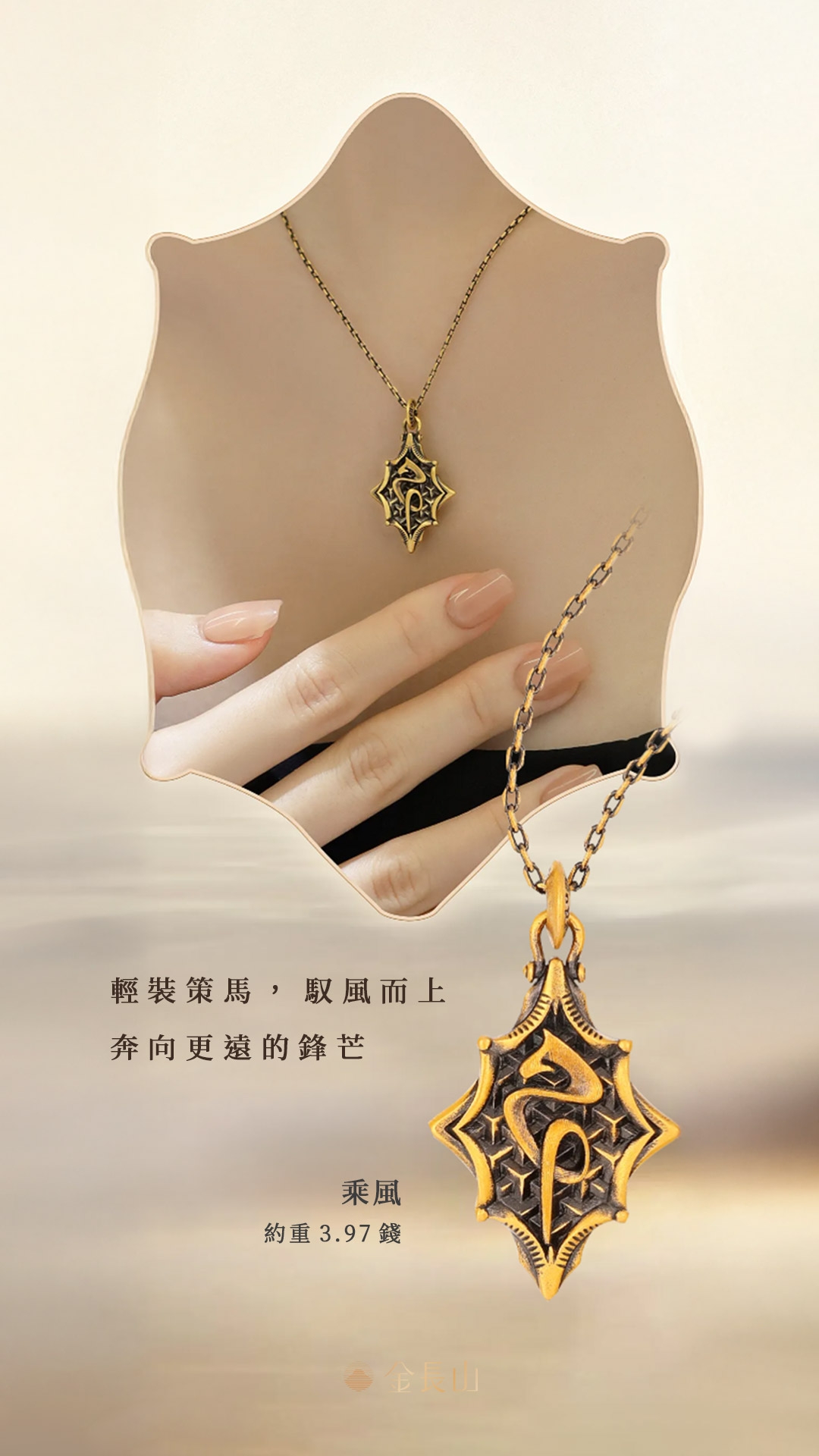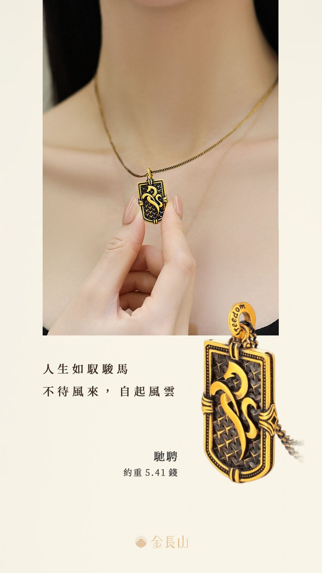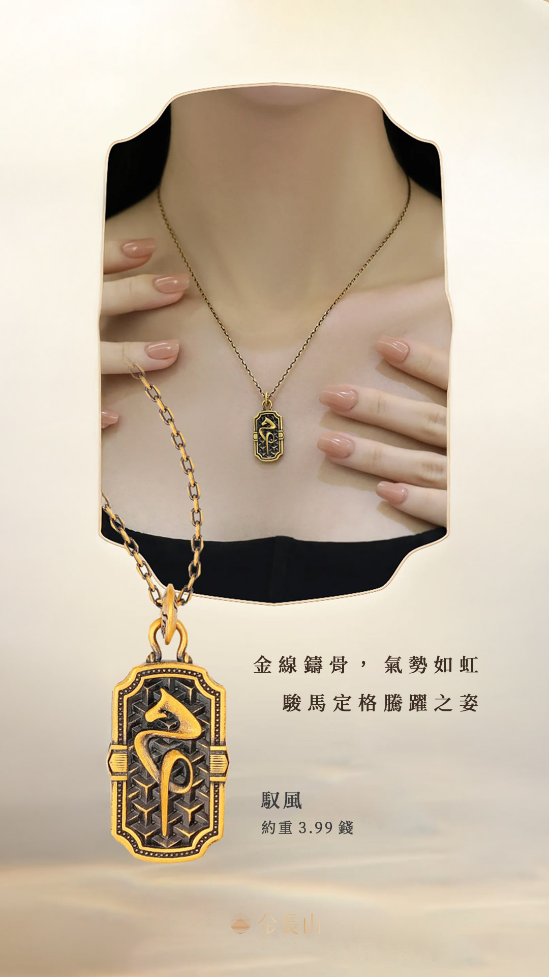 以潮黑金工藝呈現層次深邃的質感,駿馬象徵自由與突破,戰甲象徵守護與勇氣,在光影之間勾勒力量輪廓,衝破束縛、奔向更遠的方向。