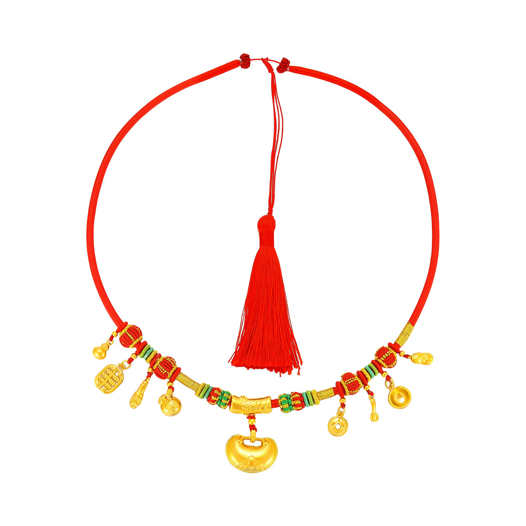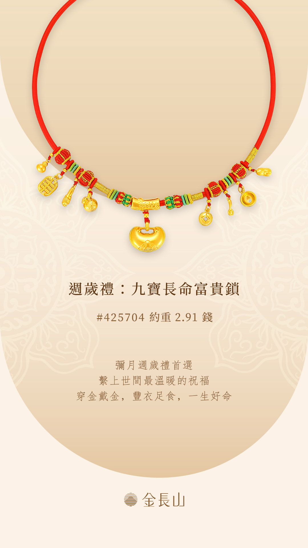 週歲禮長命鎖九寶紅繩項圈