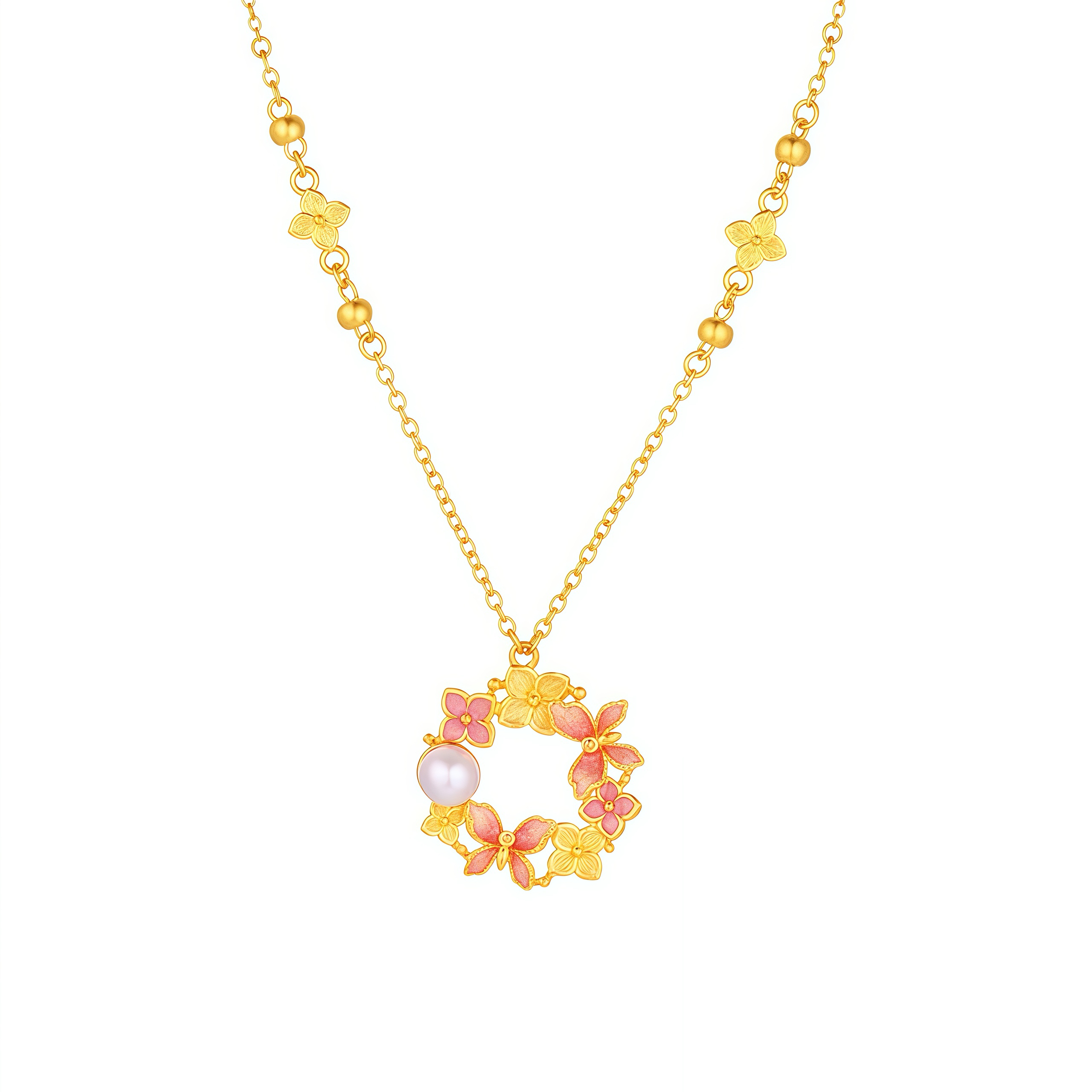 春日綻放:粉蝶花園墜鍊