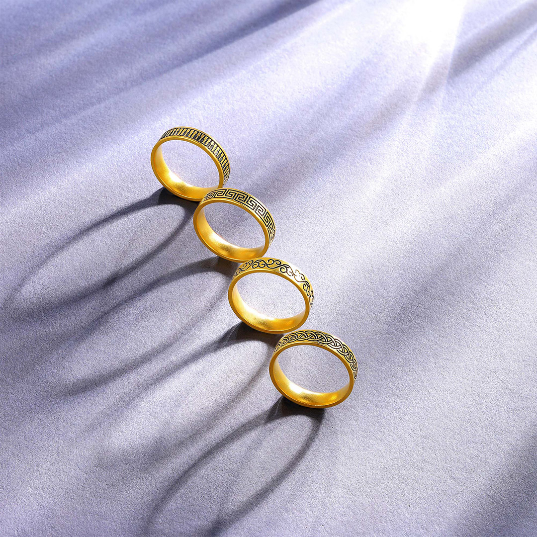 潮黑金編織紋戒