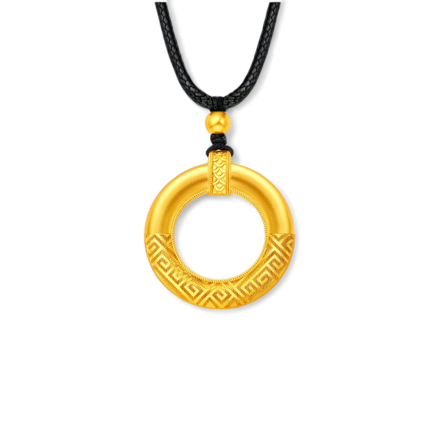 雲錦金圓形回紋墜鍊