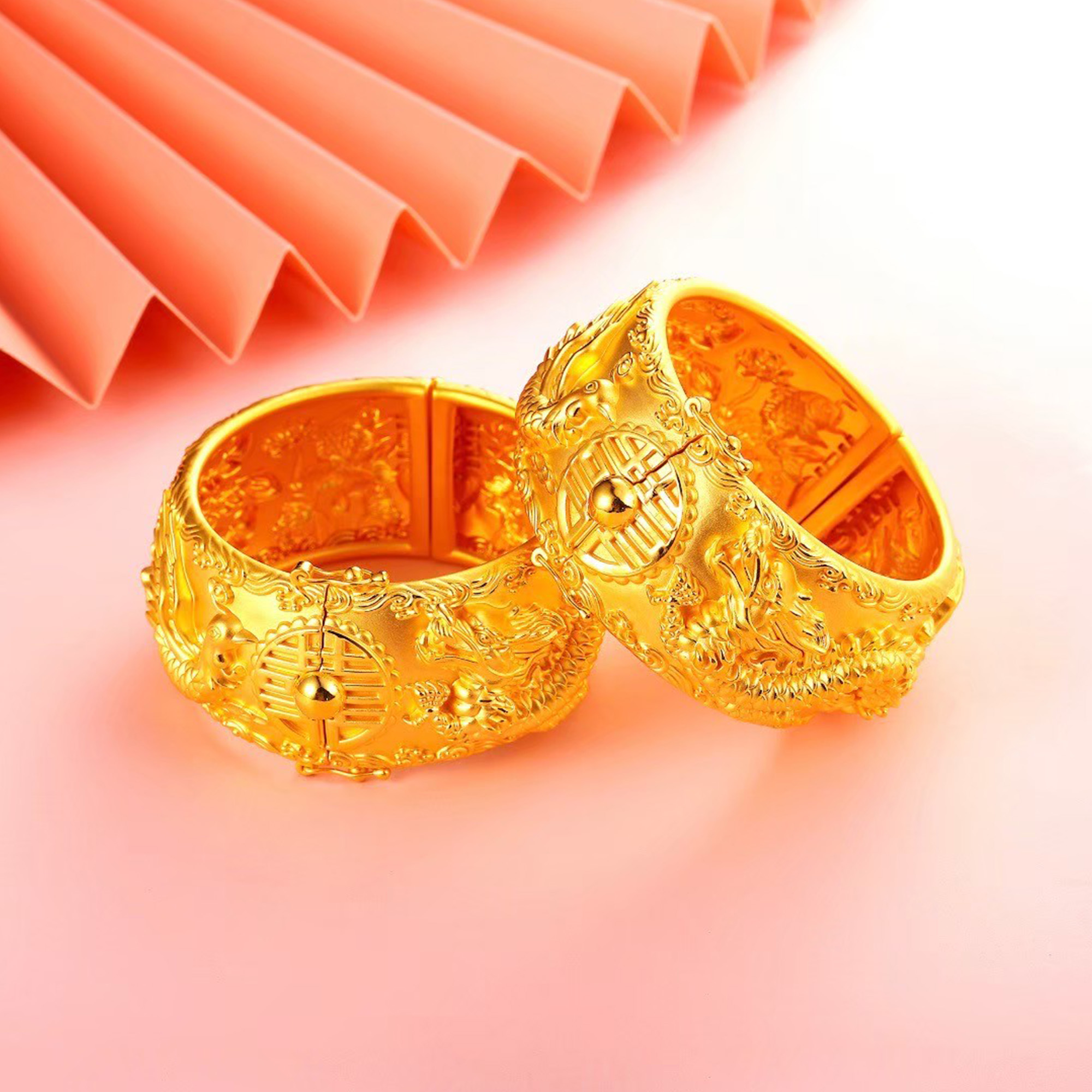 鳳羽花絲純金手鐲一對
