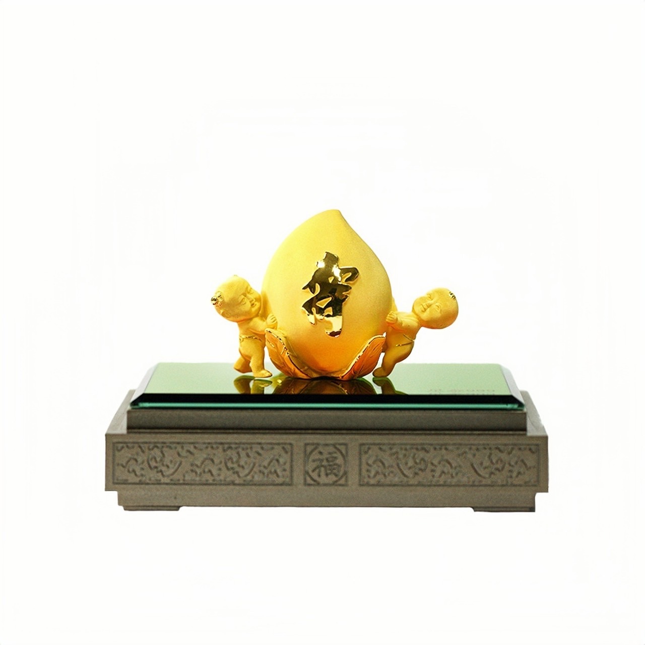 雙子獻壽擺件